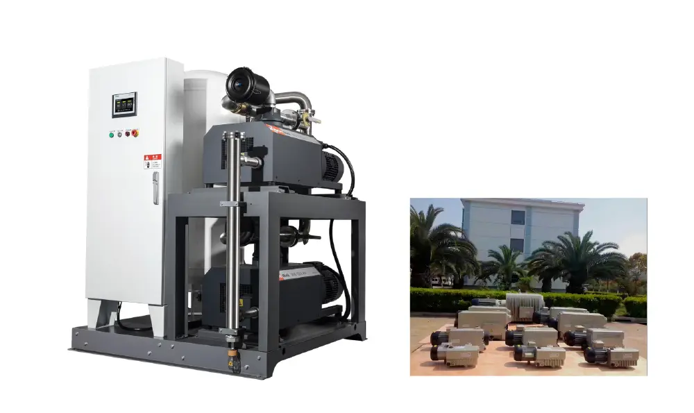 ระบบสูญญากาศทางการแพทย์แบบโรตารี่ที่ปราศจากน้ำมันเป็นวิธีแก้ปัญหาที่ประหยัดค่าใช้จ่ายสำหรับการใช้งานที่น้ำมันในห้องปั๊มหรือหมอกน้ำมันในไอเสียอาจไม่พึงประสงค์เนื่องจากไม่มีไอน้ำมันในปั๊มสุญญากาศปลอดน้ำมัน มันเป็นปั๊มสุญญากาศที่เหมาะสำหรับระบบก๊าซทางการแพทย์